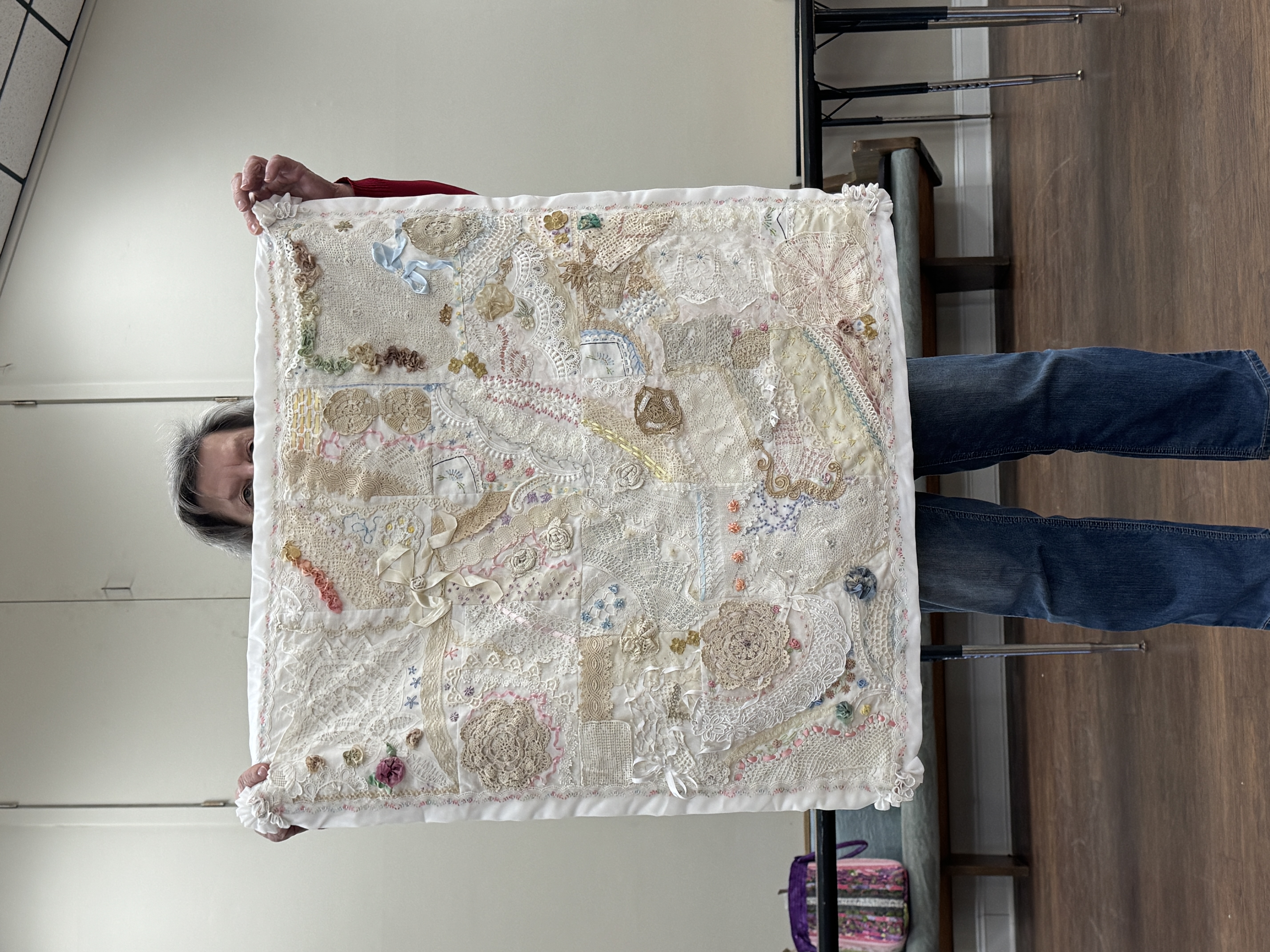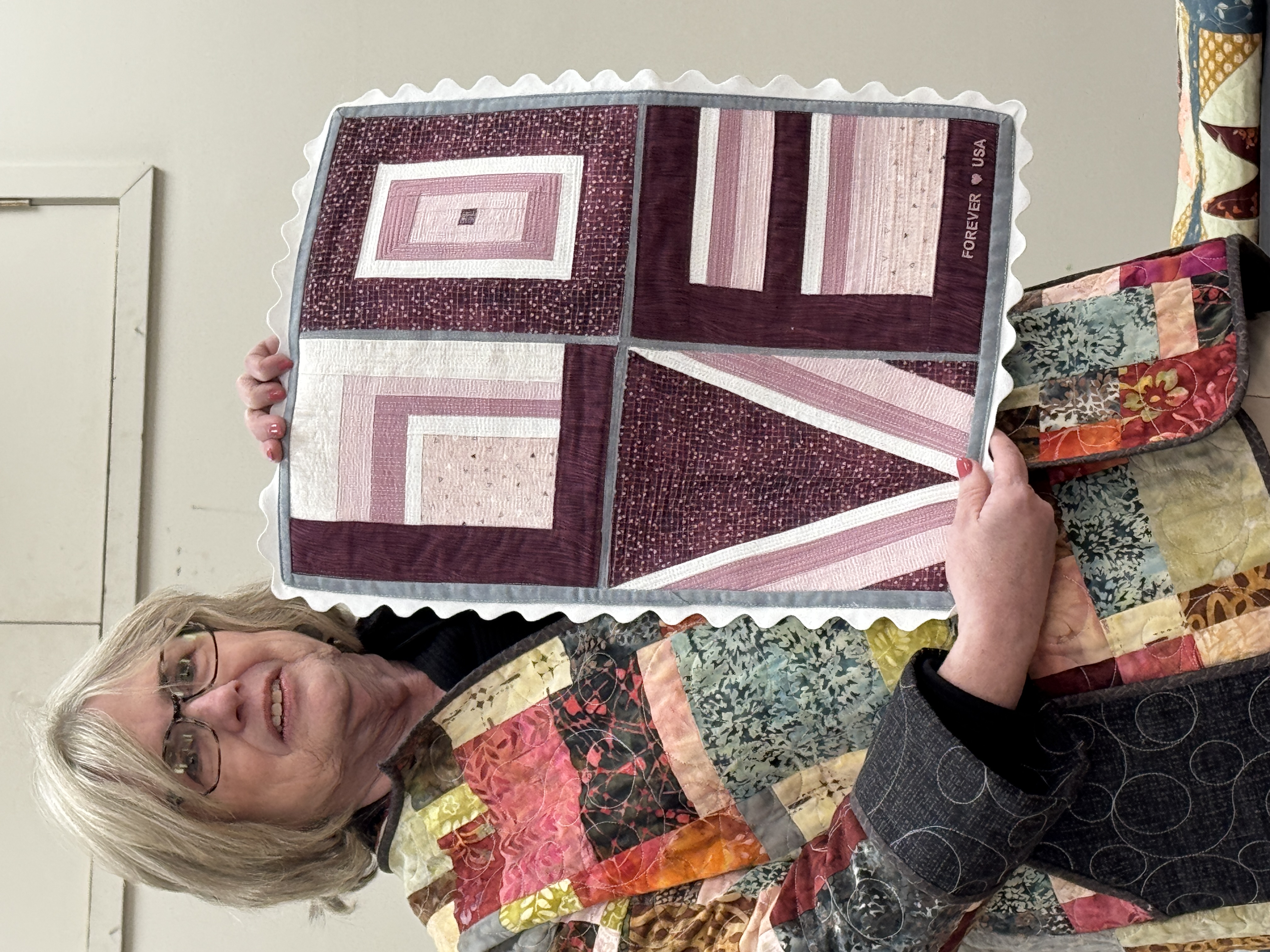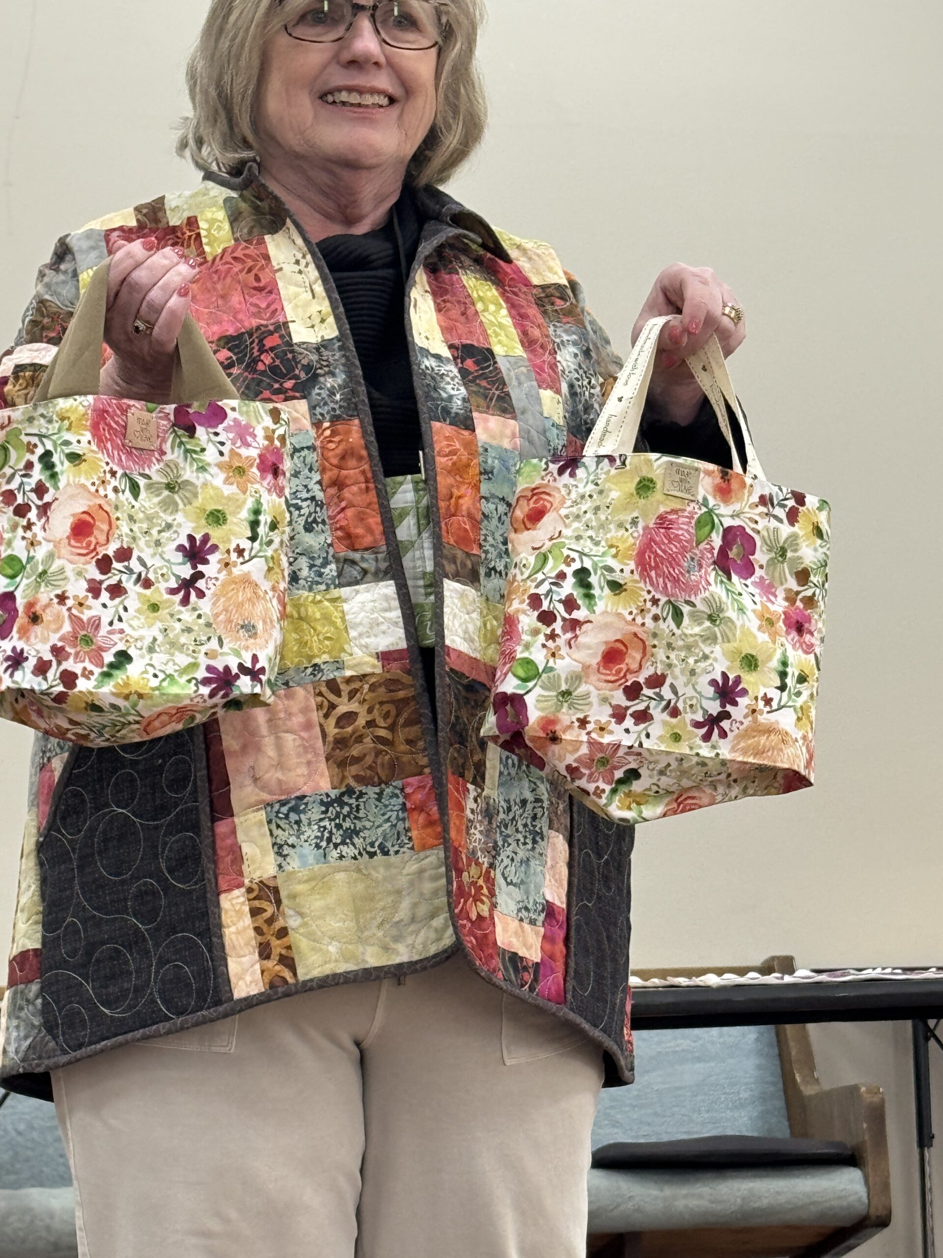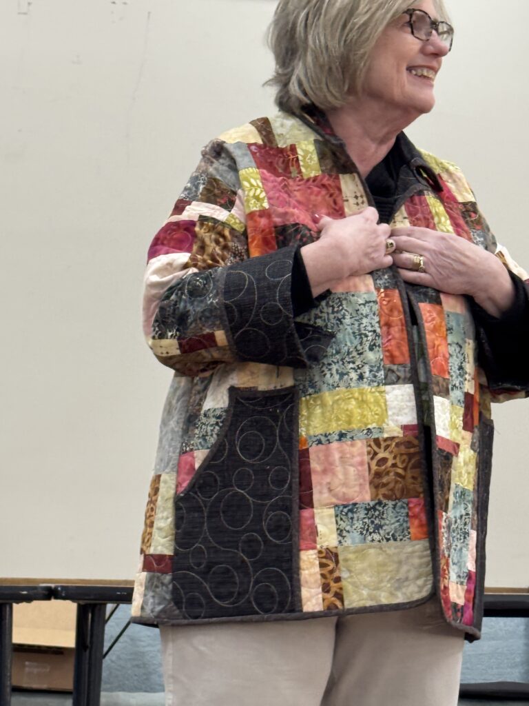 Mandy Ruden then presented a wonderful program entitled “Quilt As Desired” including many examples of domestic machine quilting on items made by her. Program handout.