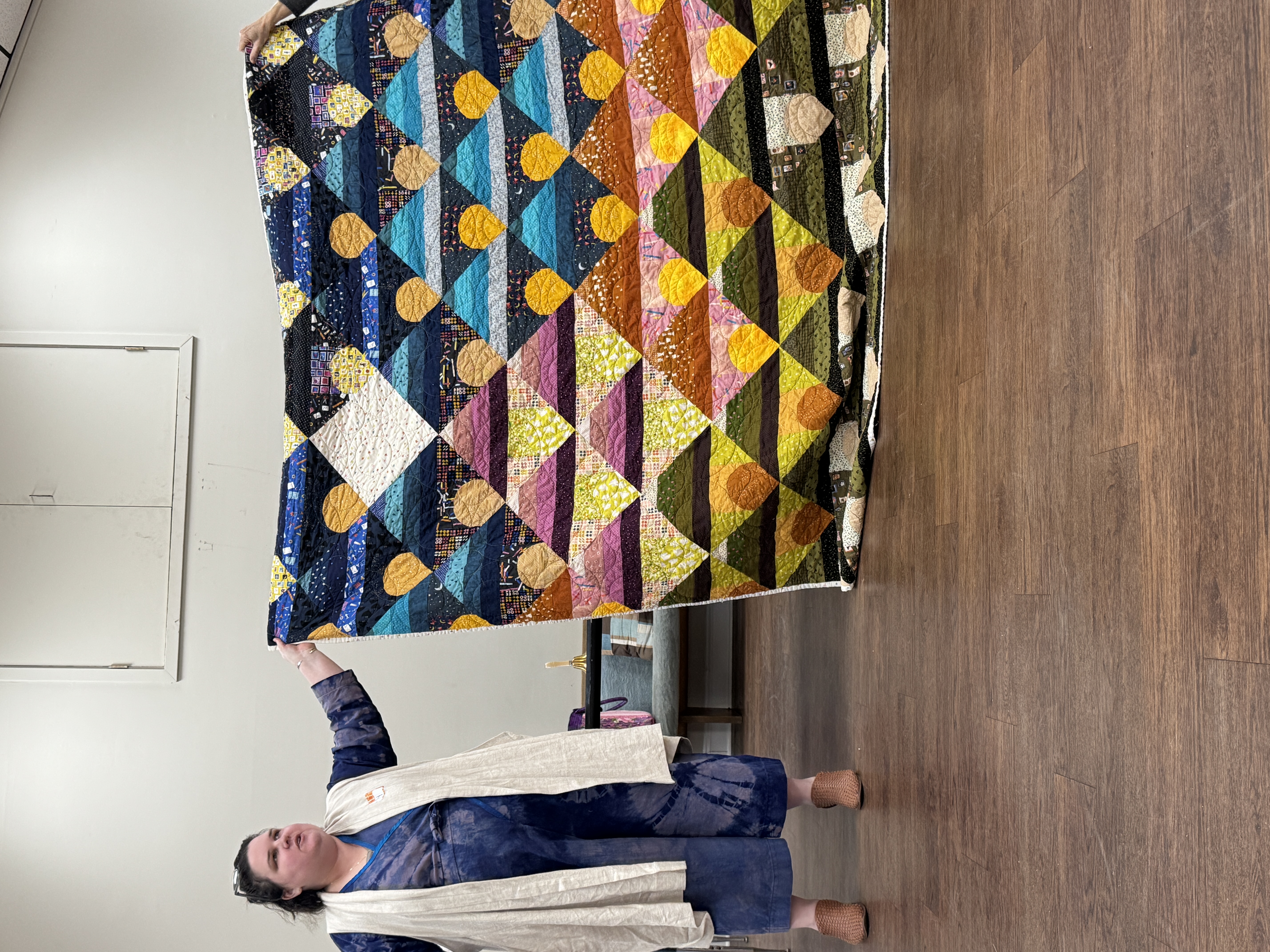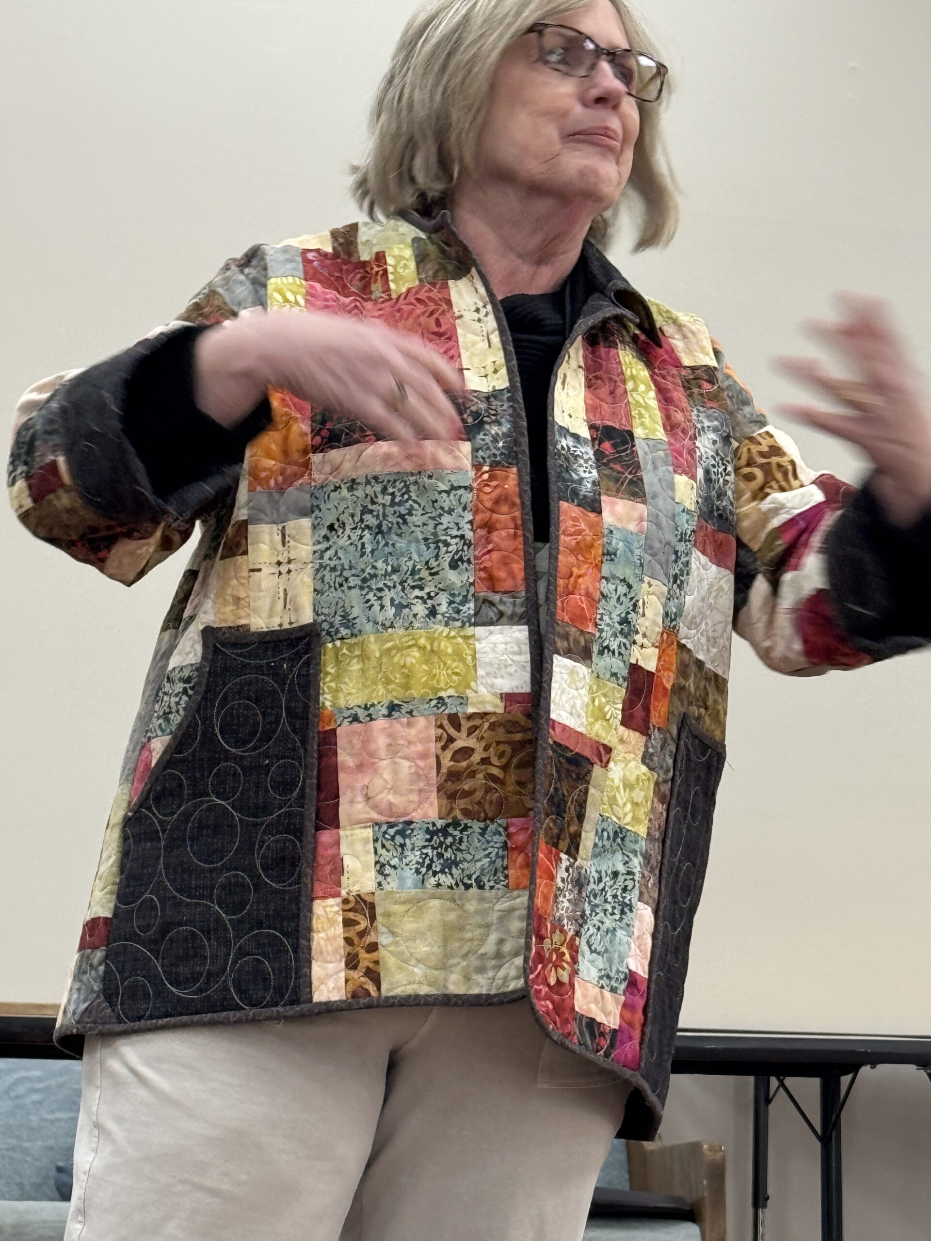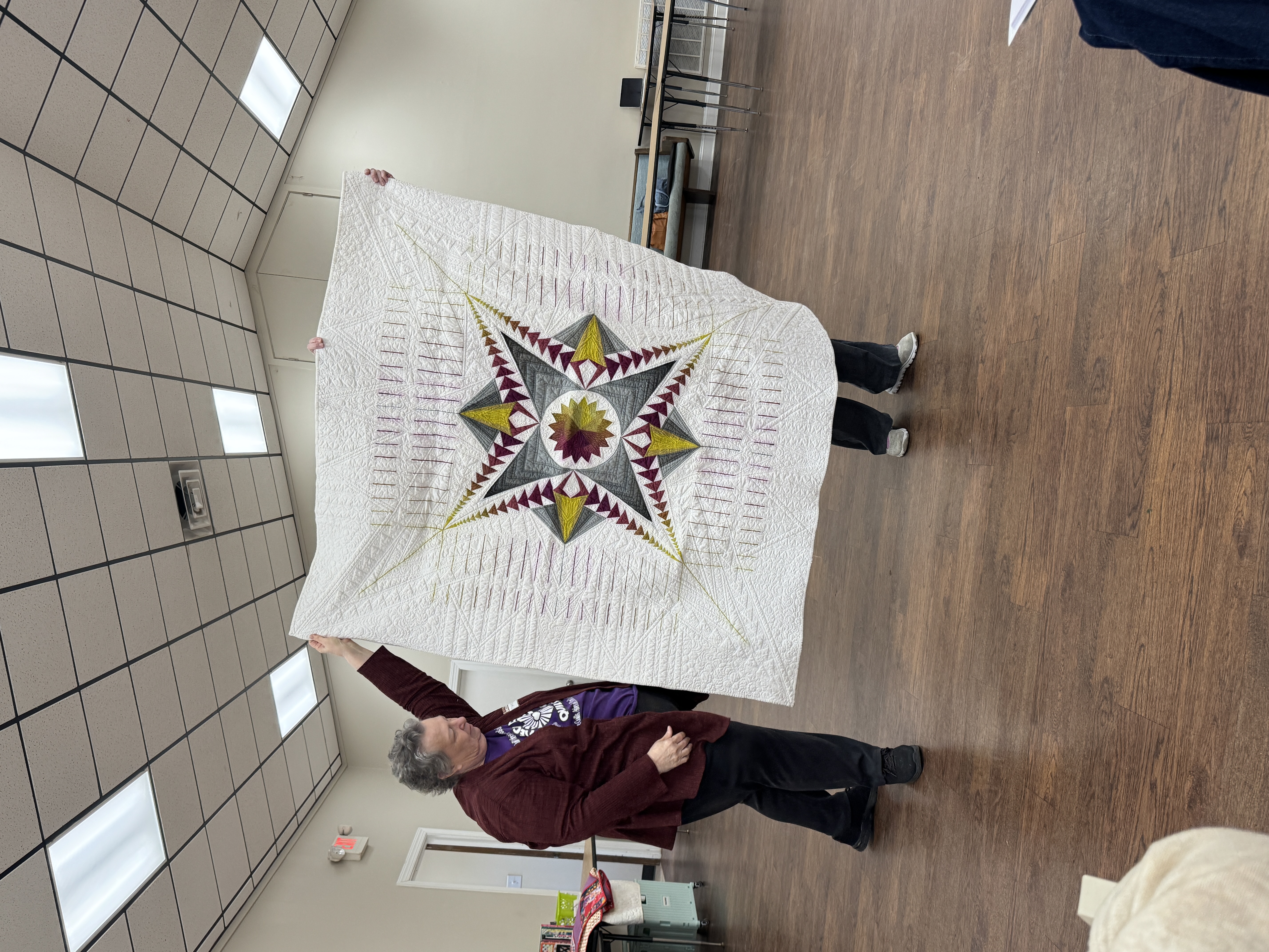 Diana Pickens will share her methods of folding, holding, and moving a quilt while quilting in order to minimize friction and drag.