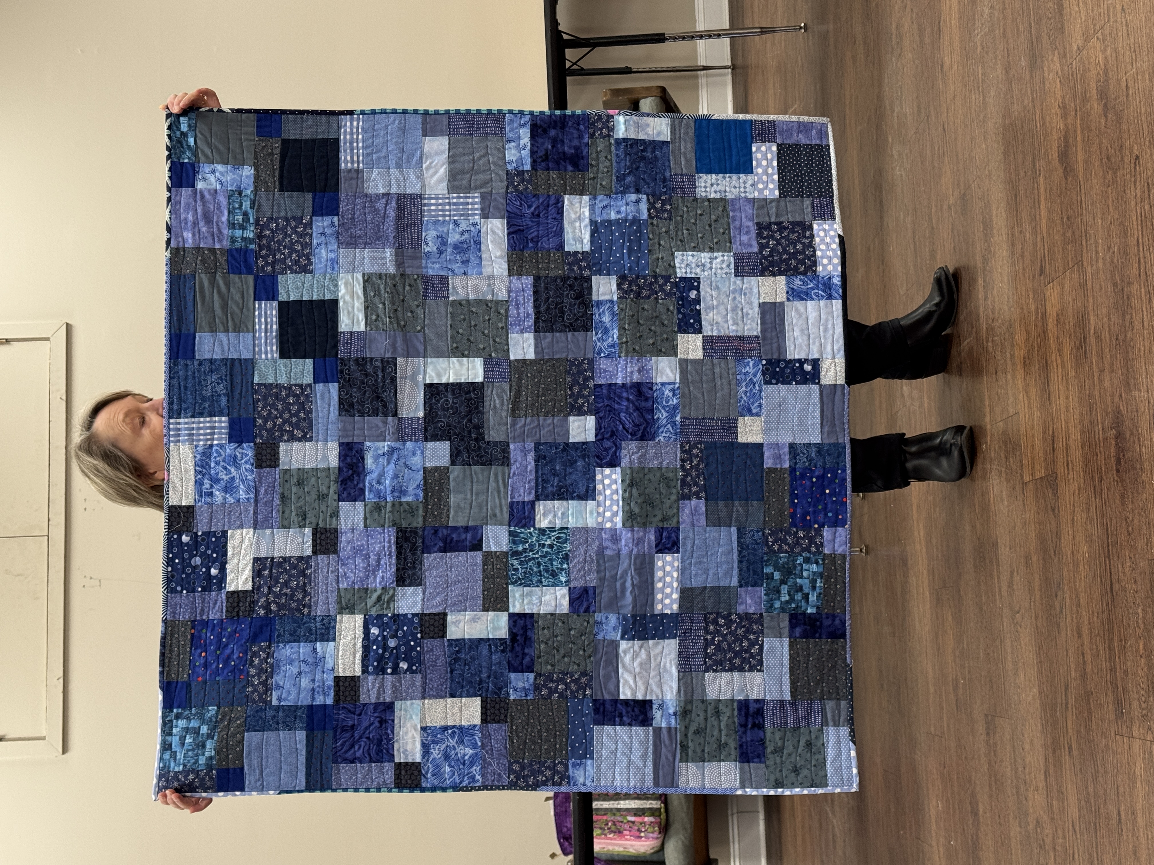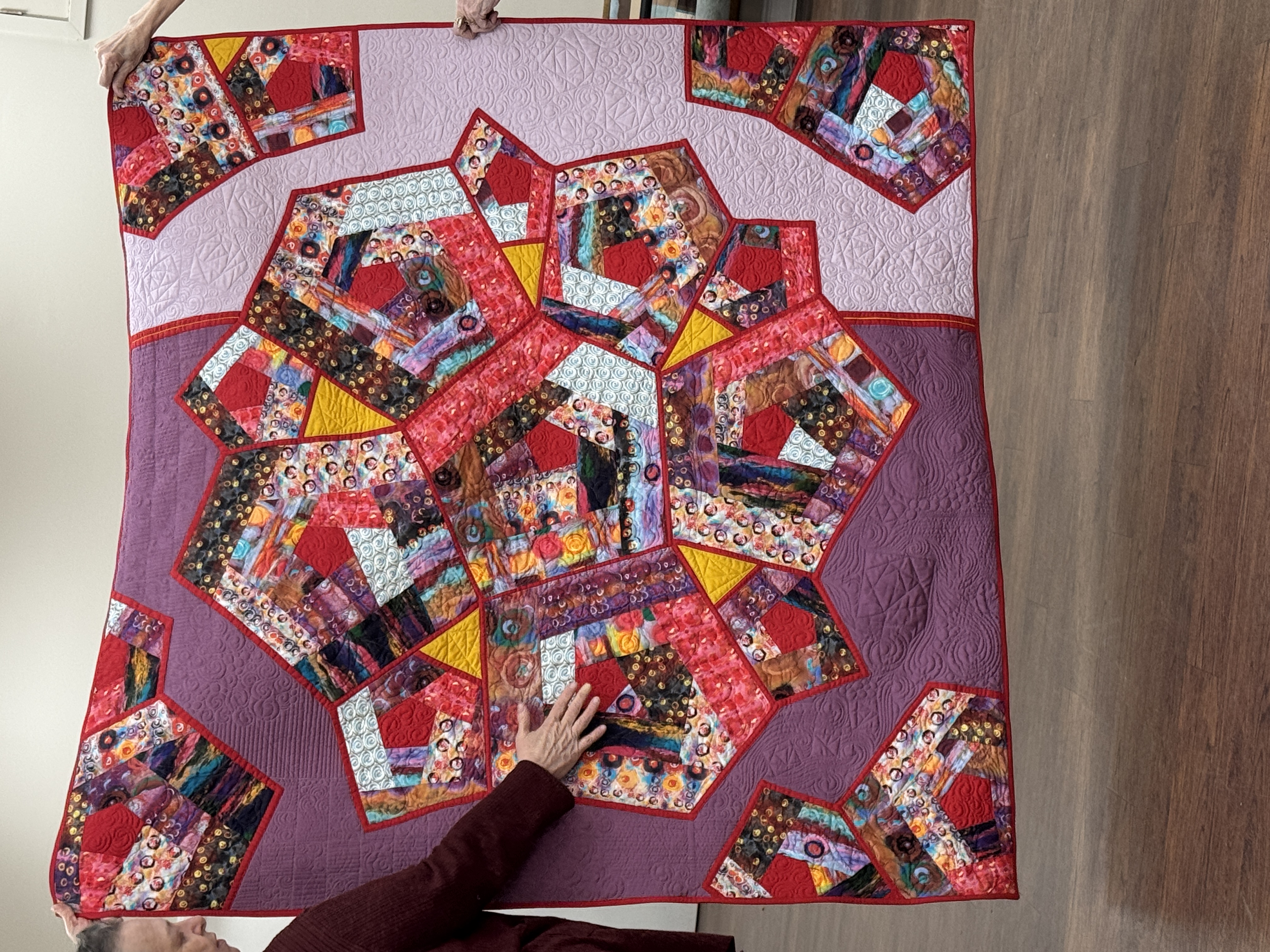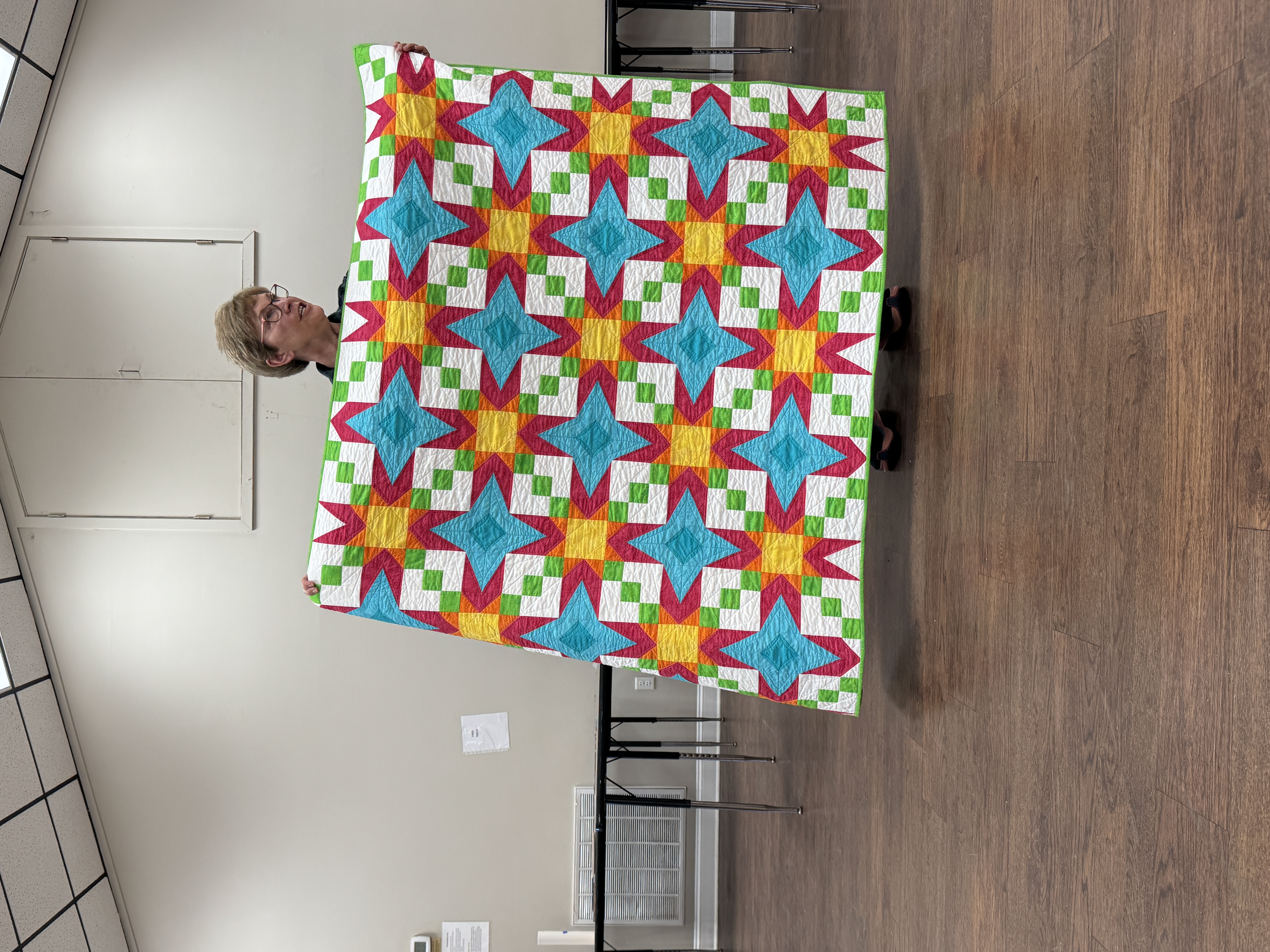 Diana Pickens will share her methods of folding, holding, and moving a quilt while quilting in order to minimize friction and drag.