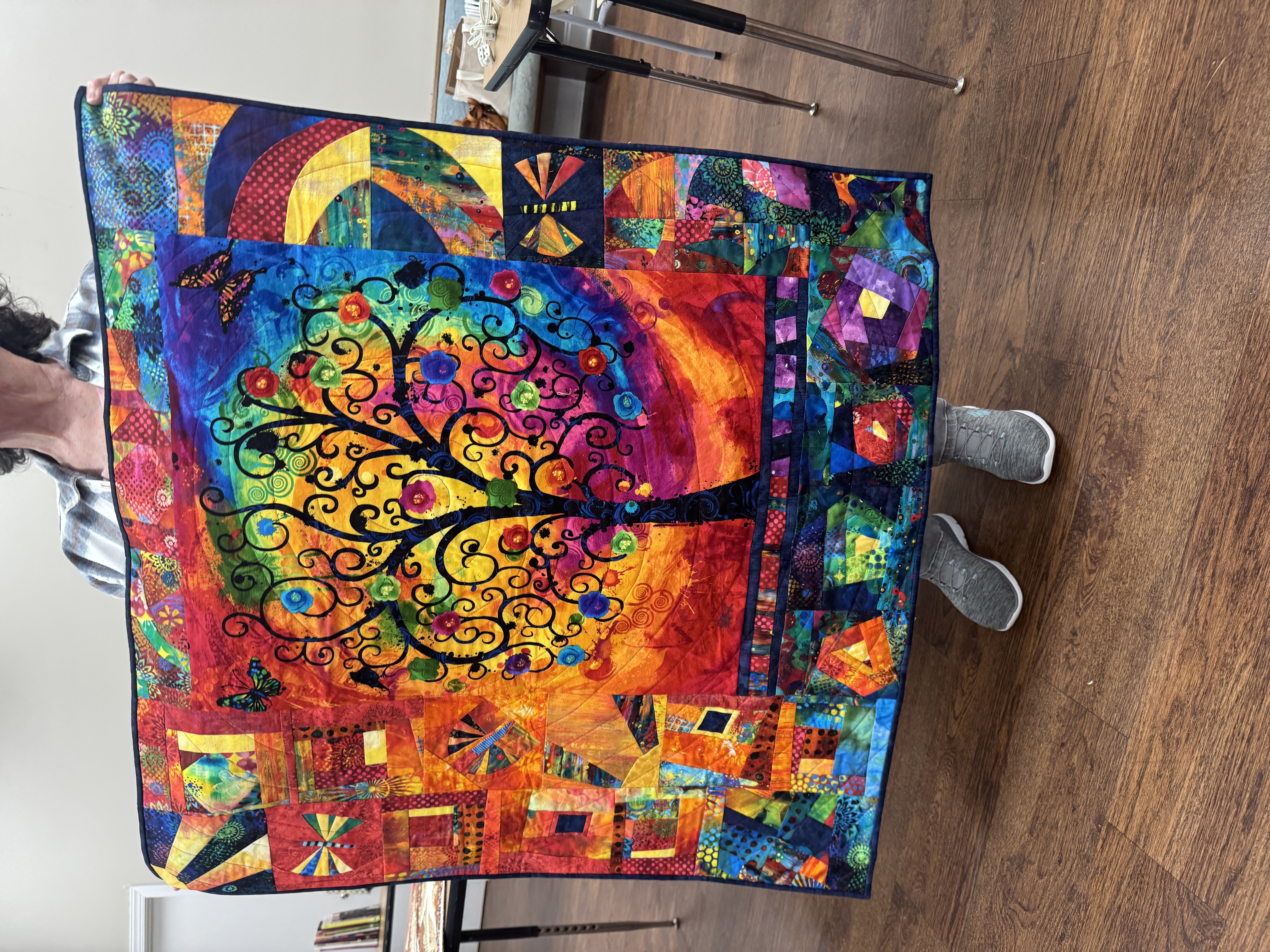 Another announcement included news that Sarah Hibbert, who presented to us last year, is part of a UK Tour during the quilt festival. She’ll lead a shopping excursion. Information can be found here: https://opulentquiltjourneys.com/allcraft-