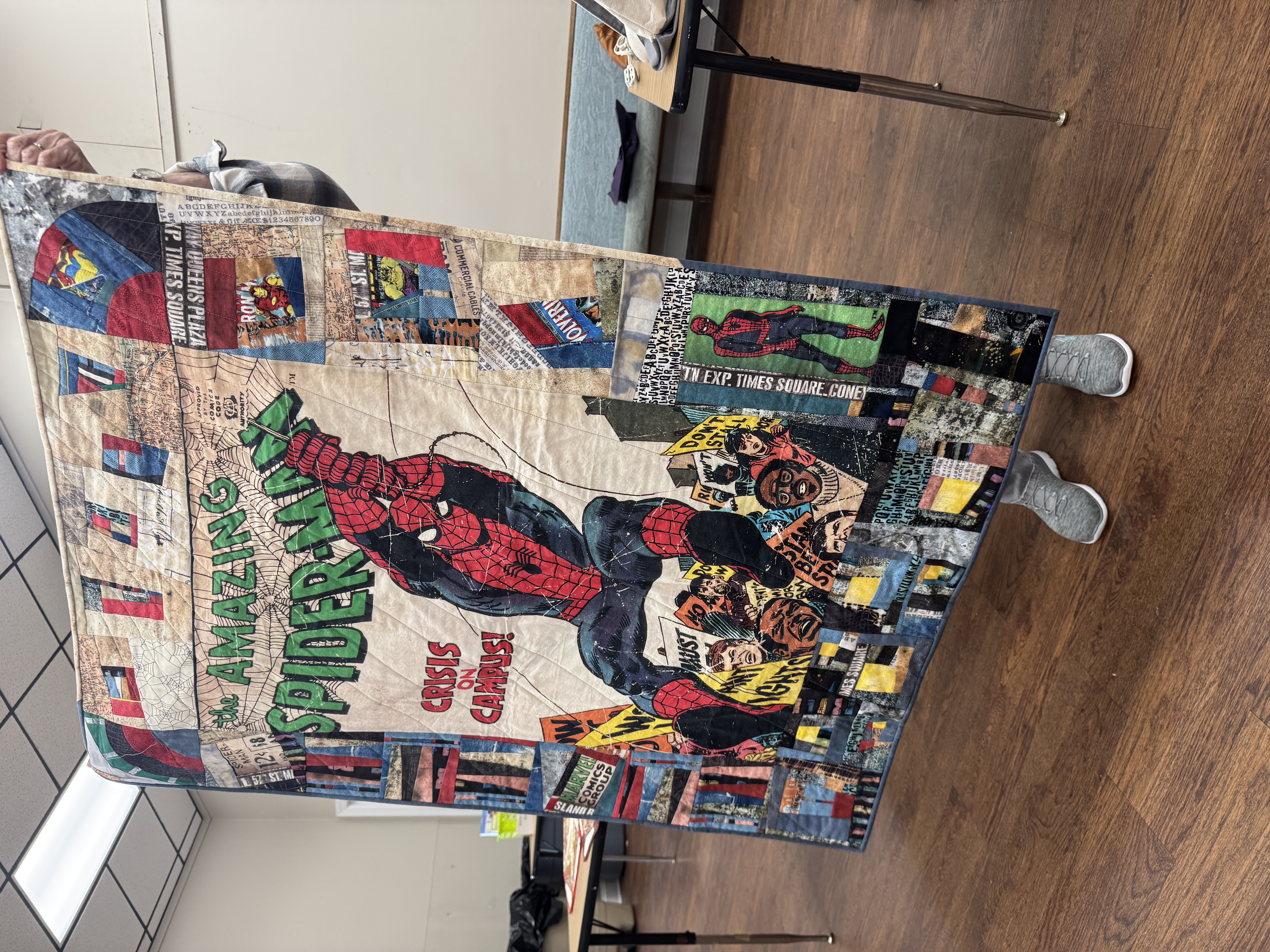 Diana displayed the first quilt put together from the first challenge blocks turned in by members last month.